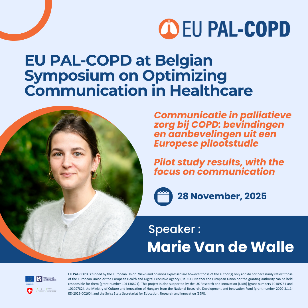The EU PAL-COPD project will be represented at the Belgian Symposium on Optimizing Communication in Healthcare, taking place on 28 November 2025, where Marie Van de Walle (Ghent University) will present results from the project’s pilot study.